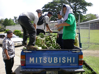 The donations were staggering. Bananas, mangoes, breadfruit, taro, yams, and coconuts galour. Fr. Cav said mass and his message was one that struck me. Pohnpei is a vibrant land of nourishment. Fruits and vegetables grow in abundance and with relative ease. No one goes hungry in Pohnpei. However, it is the role of the community to look after those who have little, in thanks for our abundance. As an American this notion of abundance was one I had missed. I had expected life to be short on luxuries here on island, and had shaped my expectations to miss the incredible gift of food and vegetables made available.
